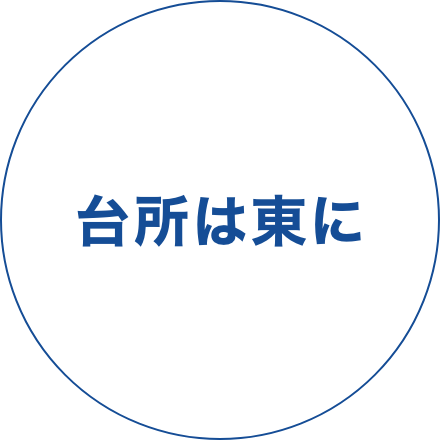 東や南東に台所を配置するのは日中温度が上がりすぎず食べ物が腐りにくいことが利点で、冷蔵庫が無かった時代の知恵です。からといって完全に北向きでは、冬場の寒い早朝に家事を行うのには不向きです。その点でも朝日のあたる東向きの場所なら快適です。
